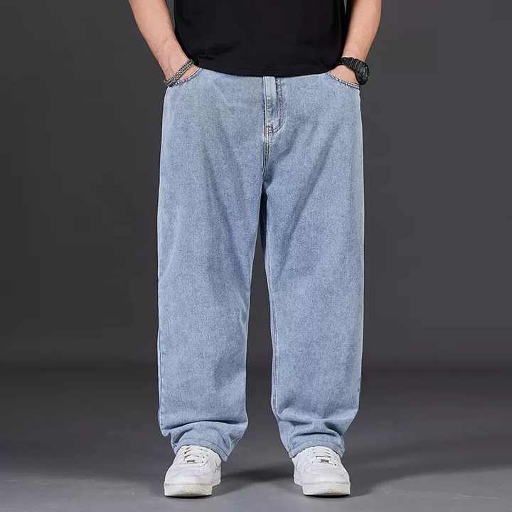 Jeans da uomo in Jeans larghi e dritti in tinta unita pantaloni semplici oversize Jeans Casual stile Hip Hop Jeans sottili