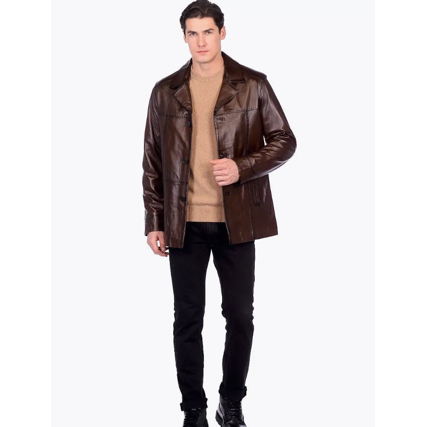 Cappotto in pelle di agnello per uomo – Vestibilità classica su misura, finitura marrone premium, leggero e resistente