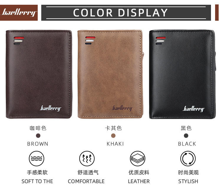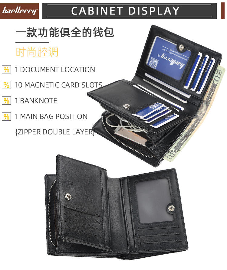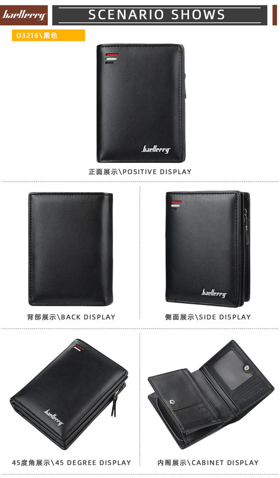 Portafoglio da Uomo Corto di Lusso Multifunzione in Pelle Sintetica con Chiusura a Cerniera e Grande Capienza per Carte