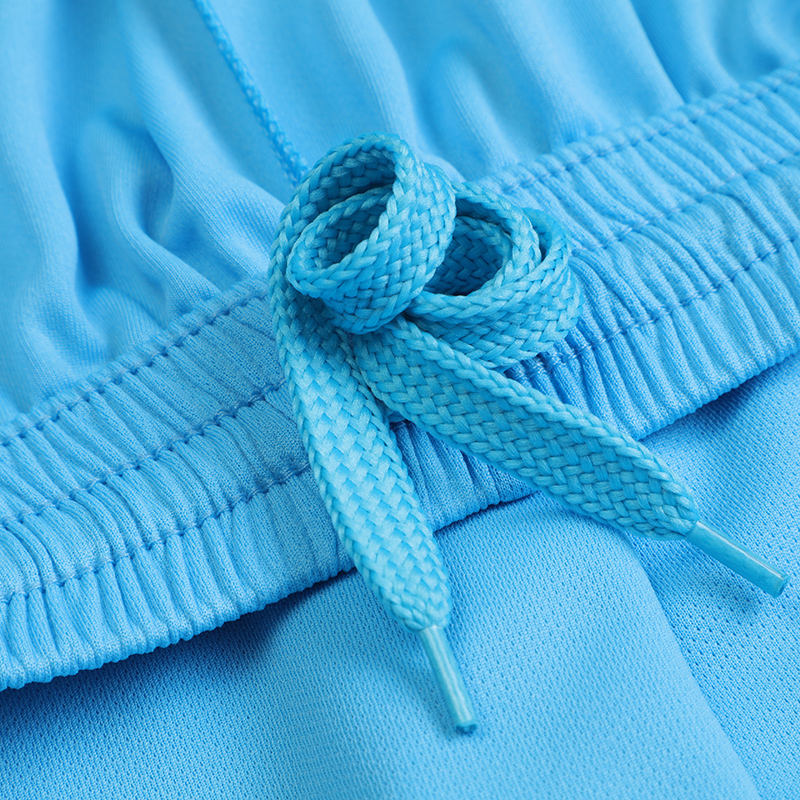 Set di divise da calcio in poliestere comode da uomo blu chiaro e comode uniformi estive con Logo personalizzato pantaloncini da calcio