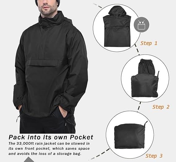 Men's Lightweight Waterproof Rain Jacket with Puffer Style Outdoor Shell Coat for Hiking Golf Travel