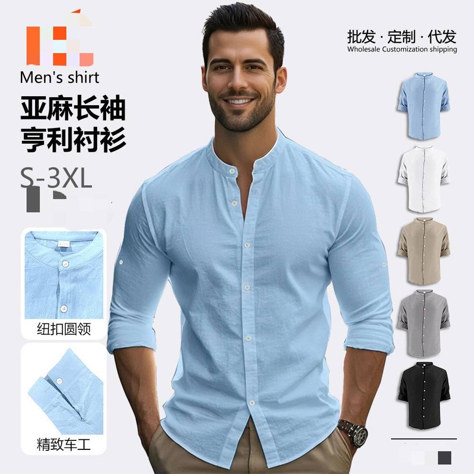 Camicia da Uomo in Misto Lino - Top Casual a Maniche Lunghe con Bottoni e Polsini Arrotolabili Sehe Fashion