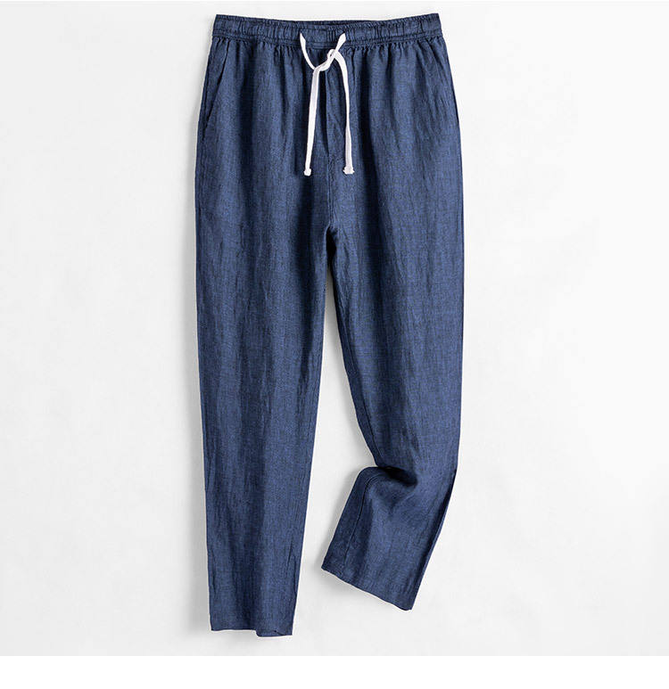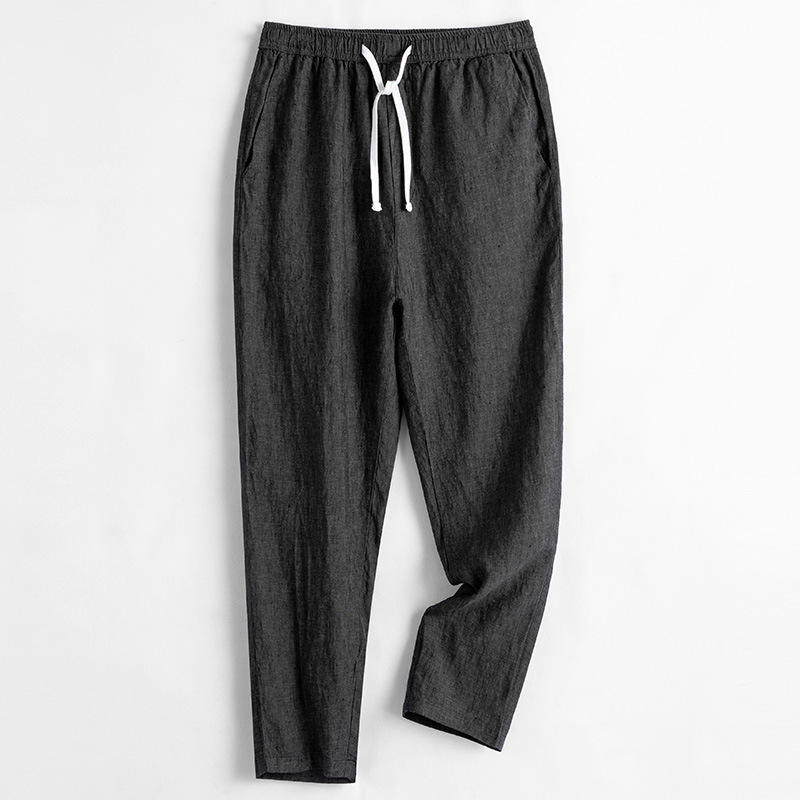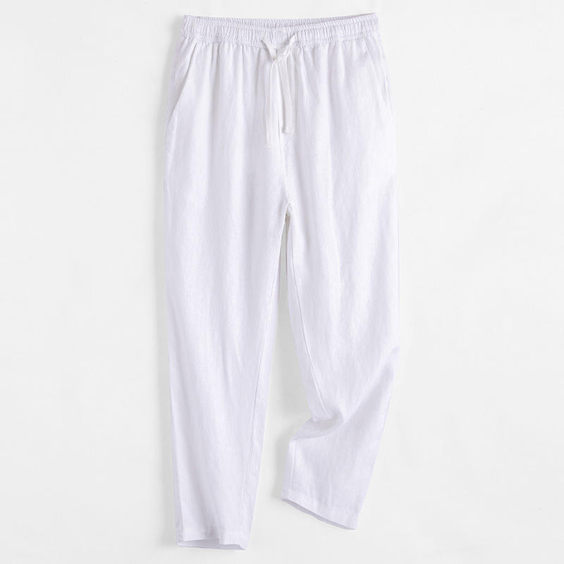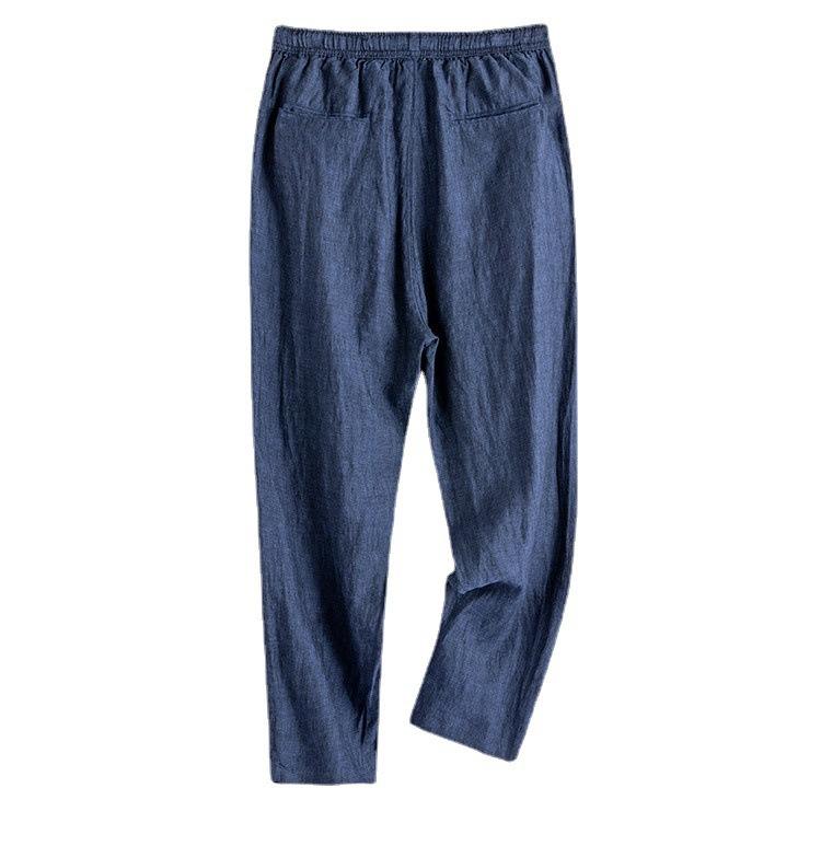 Pantaloni in Lino da Uomo, Cotone Traspirante Estivo, Gamba Dritta, Tinta Unita, Vita Elastica, Pantaloni Casual in Lino