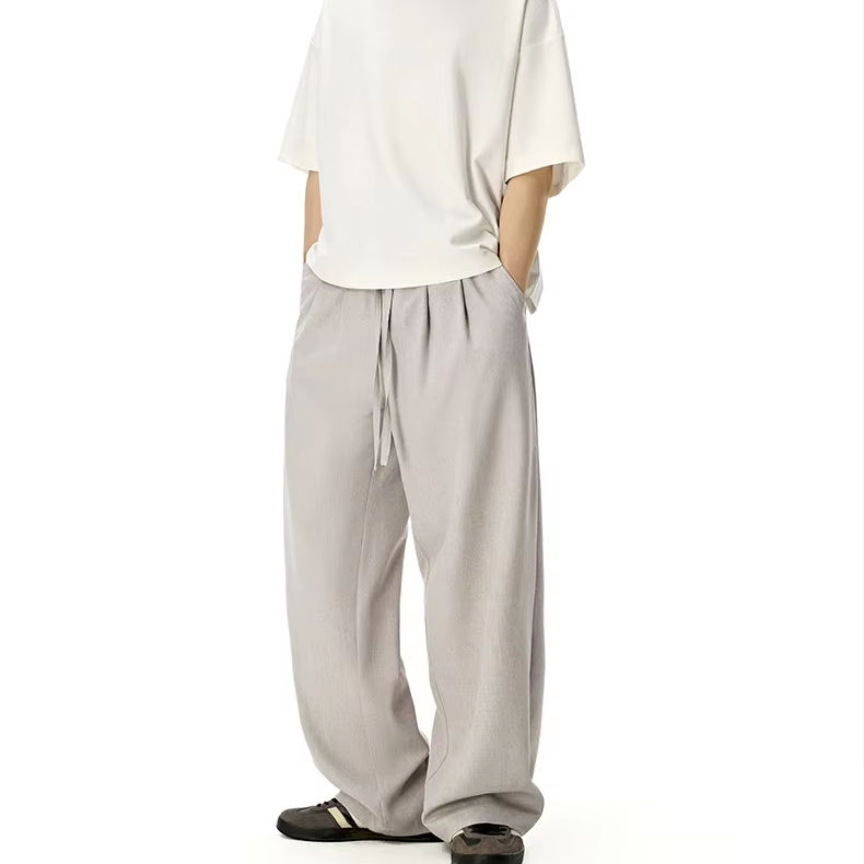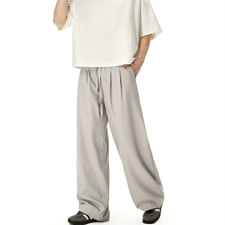 Men's Linen Straight-Leg Pants for Spring Summer Trendy Casual Brand Sportswear Customizable Loose Waist
