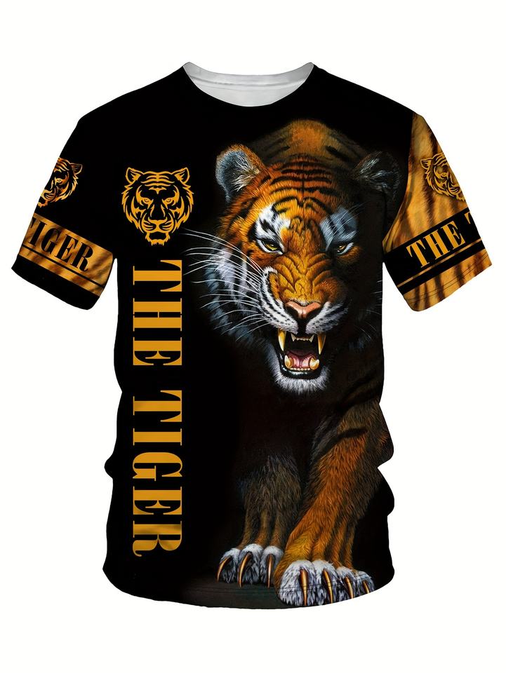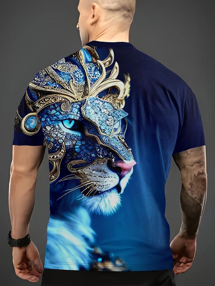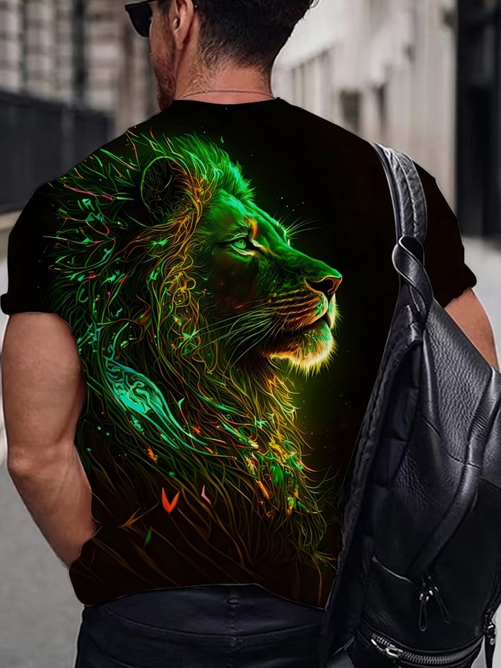 Maglietta da uomo con stampa leone, maglietta girocollo Casual a manica corta, abbigliamento da uomo per l'estate all'aperto