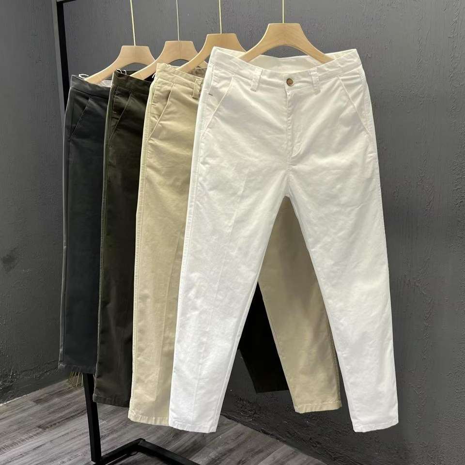 Pantaloni Lunghi da Uomo di Tendenza Stile Coreano Casual Eleganti con Cerniera Taglio Dritto e Aderente da Ufficio