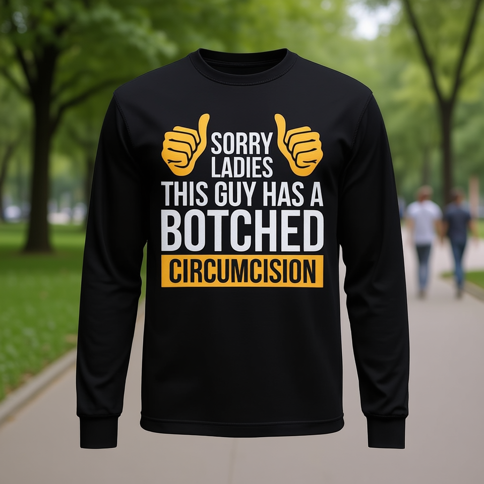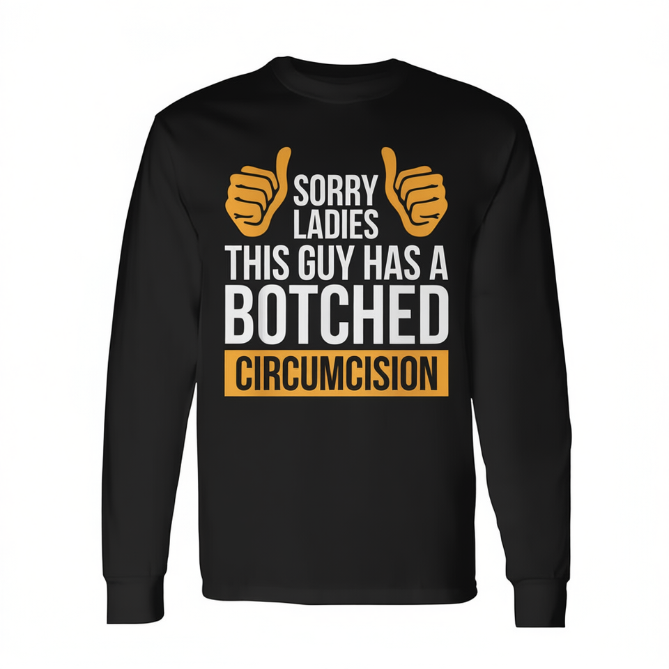 T-shirt da uomo a maniche lunghe girocollo con stampa serigrafica, tema Commedia: Circoncisione Cattiva, Scusa le donne, questo tipo lo ha! Promozionale