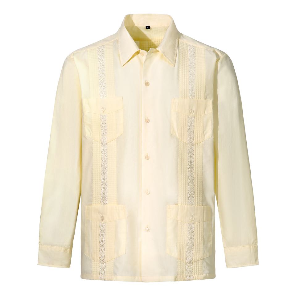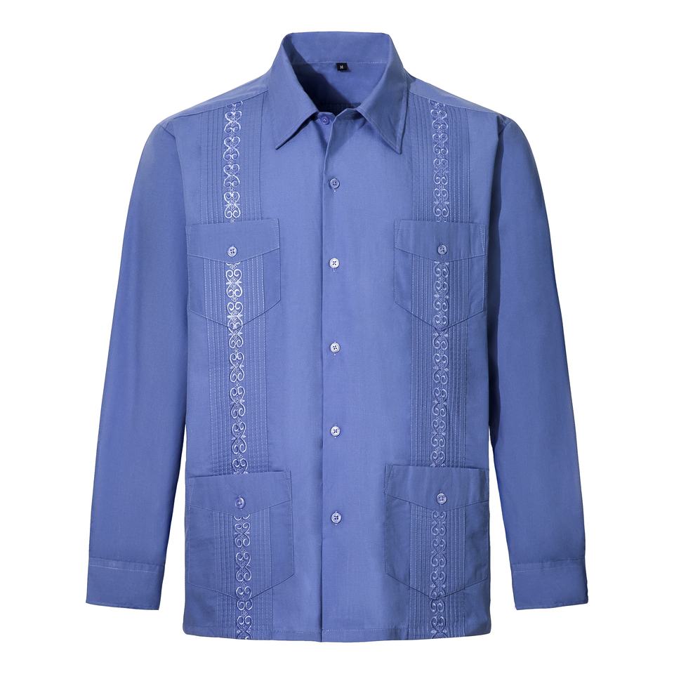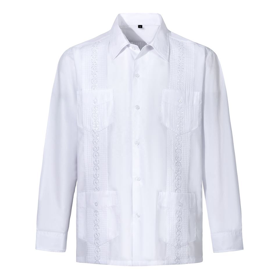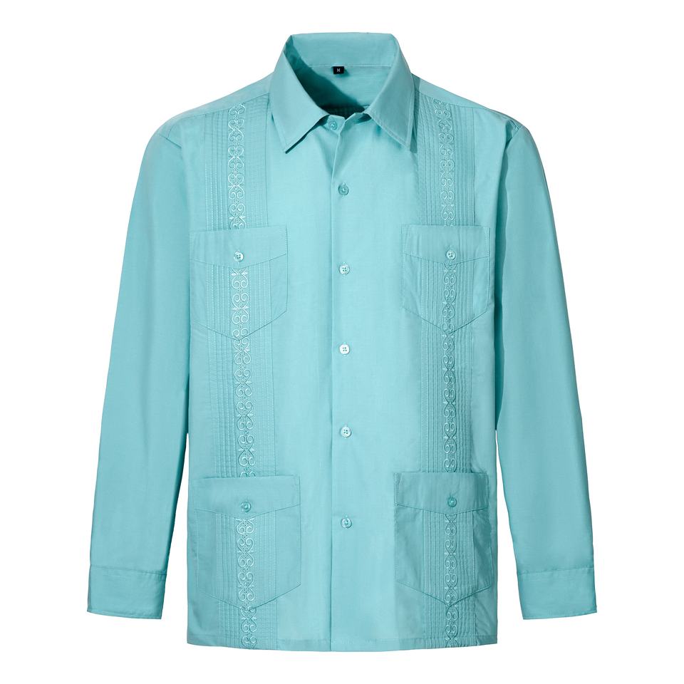 Camicie Guayabera da uomo a maniche lunghe, taglie forti, casual, in cotone, con bottoni, per la spiaggia e matrimoni