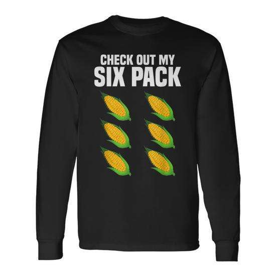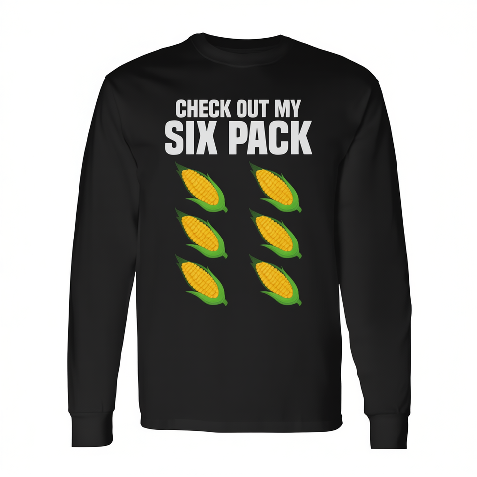 Maglietta a Maniche Lunghe da Uomo con Motivo Mais e Pannocchie, Prodotto Promozionale per Agricoltori e Agricoltura