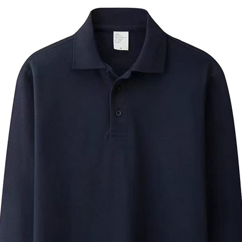 Polo a maniche lunghe in cotone da uomo per primavera e autunno, nuova maglia a tinta unita, felpa casual con risvolto ampio