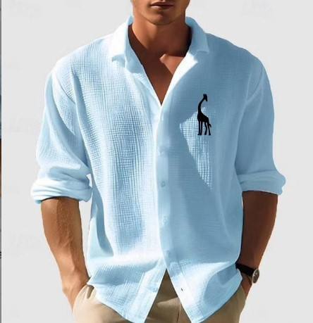 Men's Long-sleeved Shirt Waffle Button Casual Fashion Black Top Street Cardigan Men Casual Beach Shirts