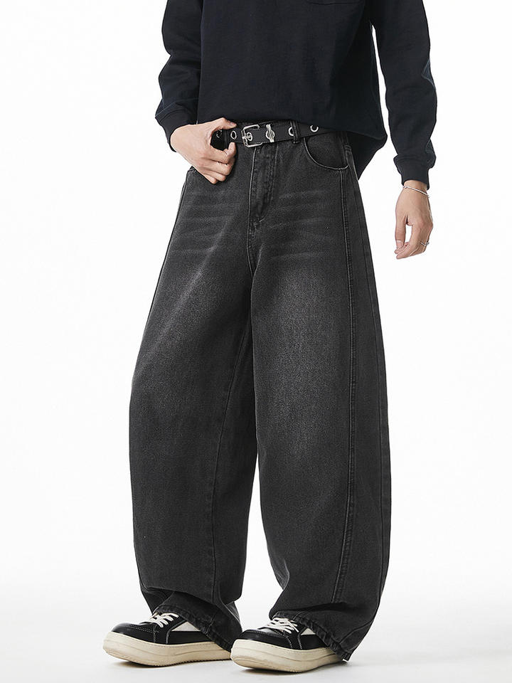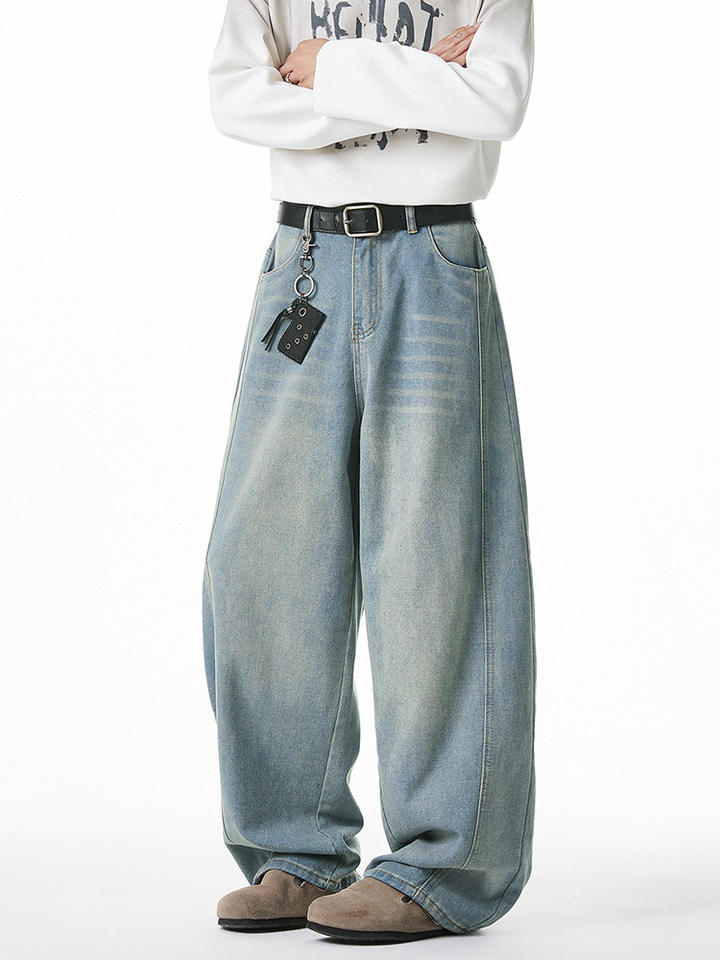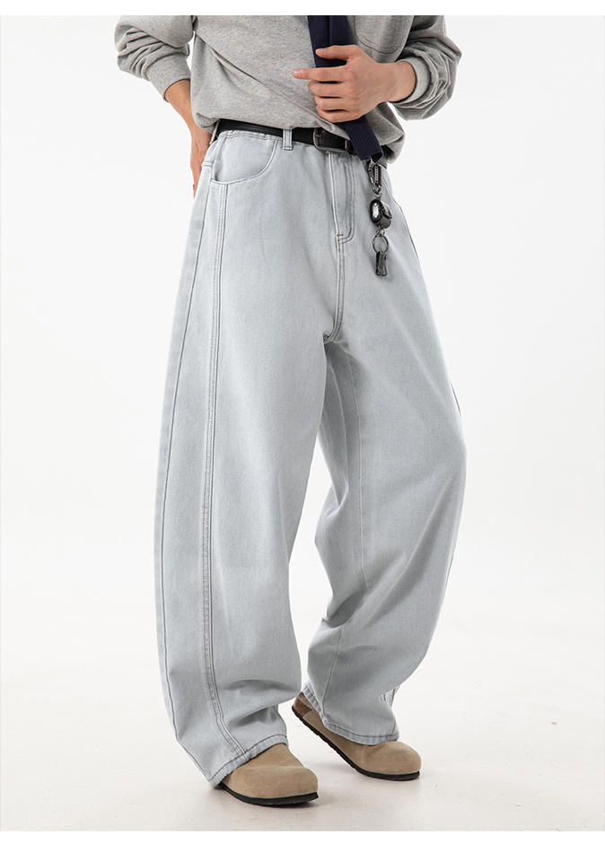 Jeans da uomo a vestibilità ampia, lavati, primavera estate, nuovo stile, design con spacchi laterali, pantaloni a carota, pantaloni lunghi stile retrò americano