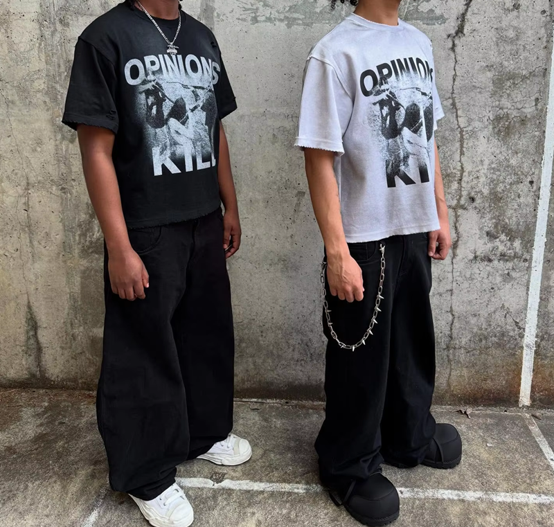 T-Shirt di Lusso da Uomo di Alta Qualità 220GSM, Personalizzabile con Logo, Stampa Grafica Effetto Vissuto, Stile Rock and Roll, Serigrafia
