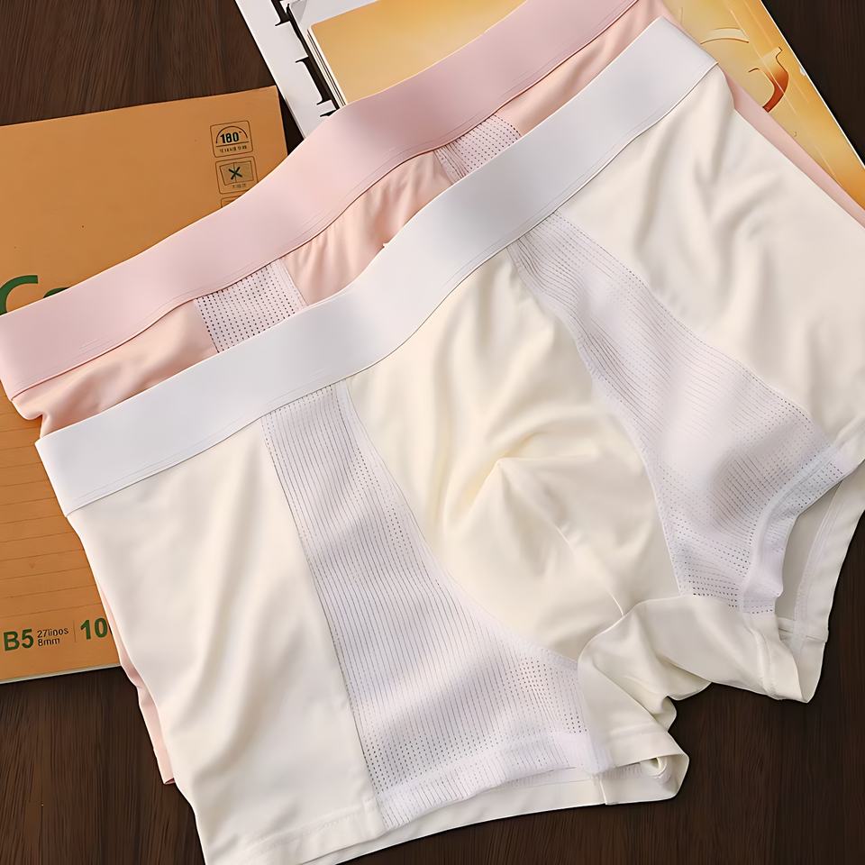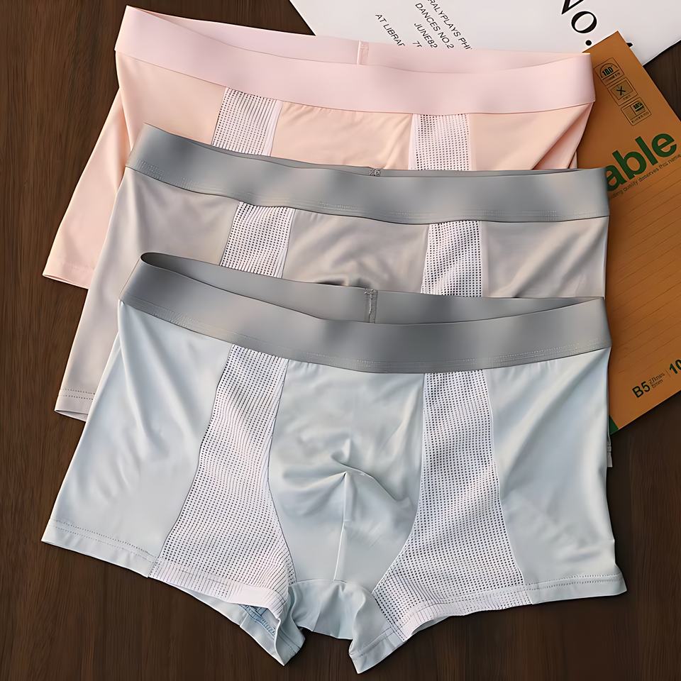 Men's Mid-Rise Boxer Pants Quick-Drying Breathable Ice Silk Mesh Underwear for Boys Sexy Knitted Fabric