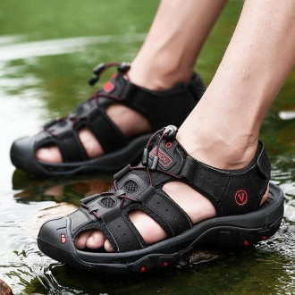 Men's Natural Leather Trekking Sandals in 4 Colors for Sports Use