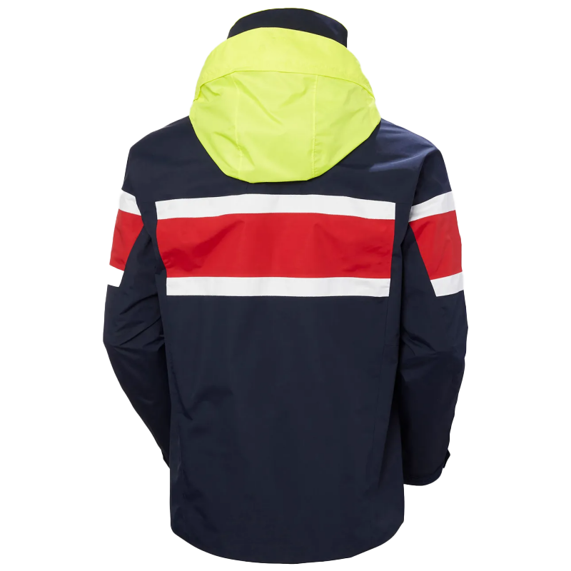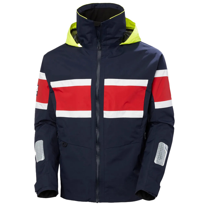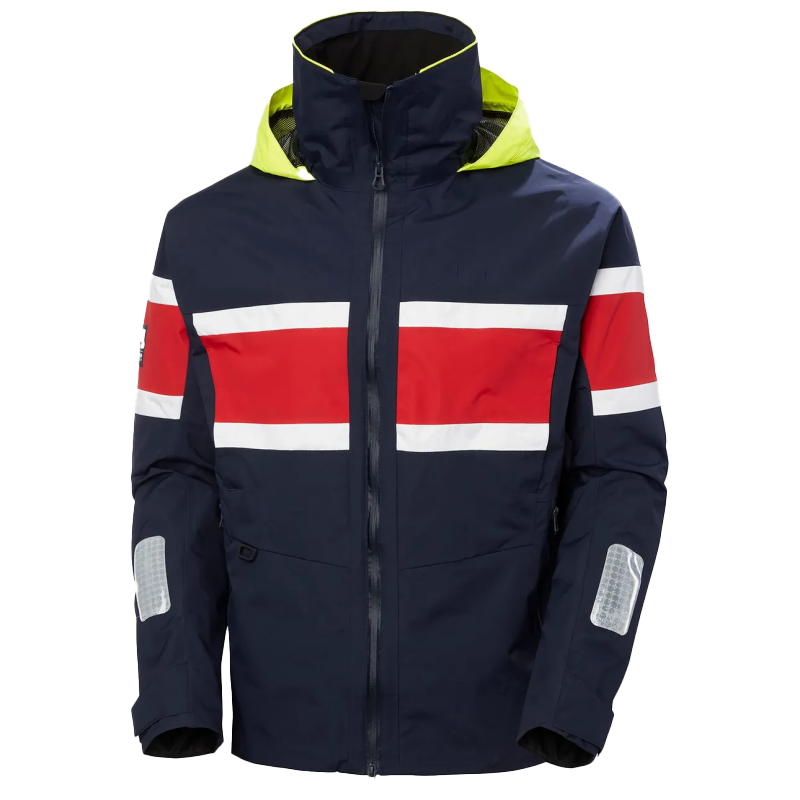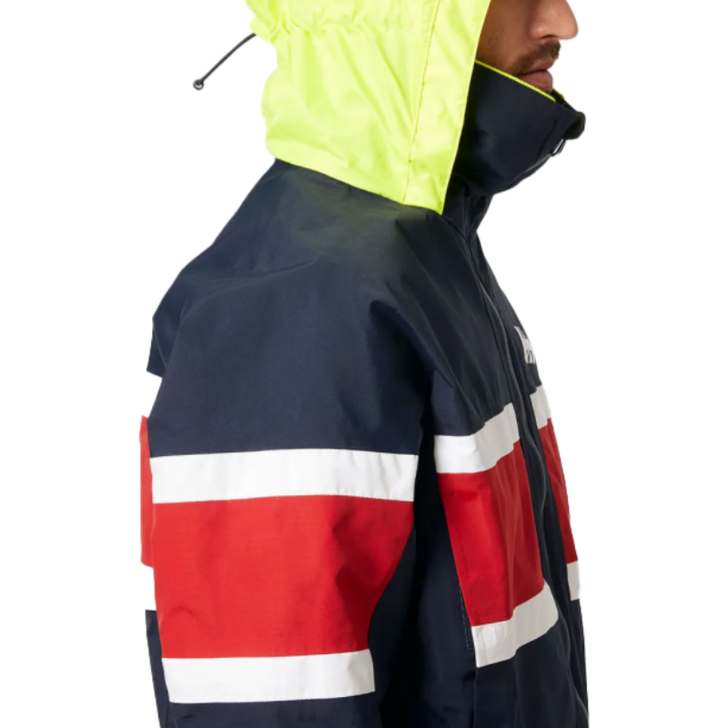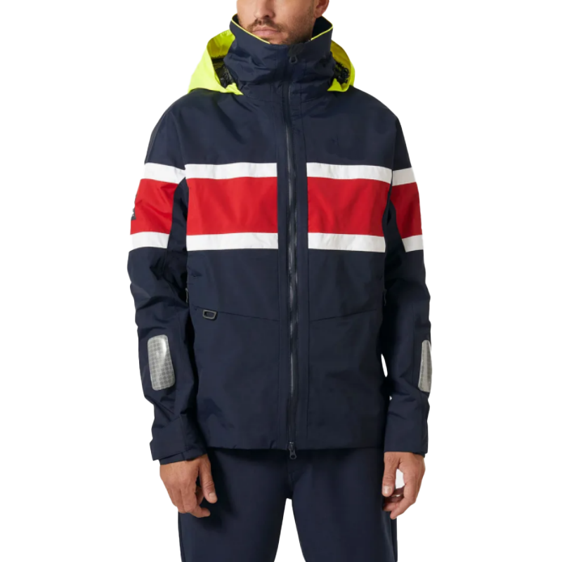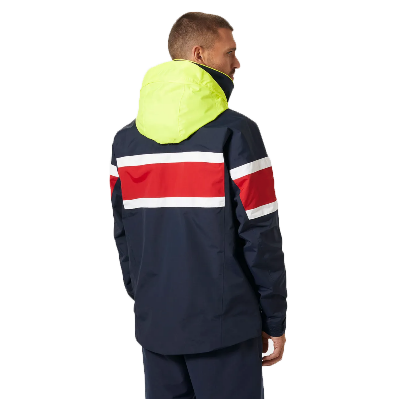 Giacca da Vela da Uomo Blu Navy, Rossa e Bianca con Blocchi di Colore, con Cappuccio, Impermeabile e Antivento, per Regate Offshore e Crociere Costiere