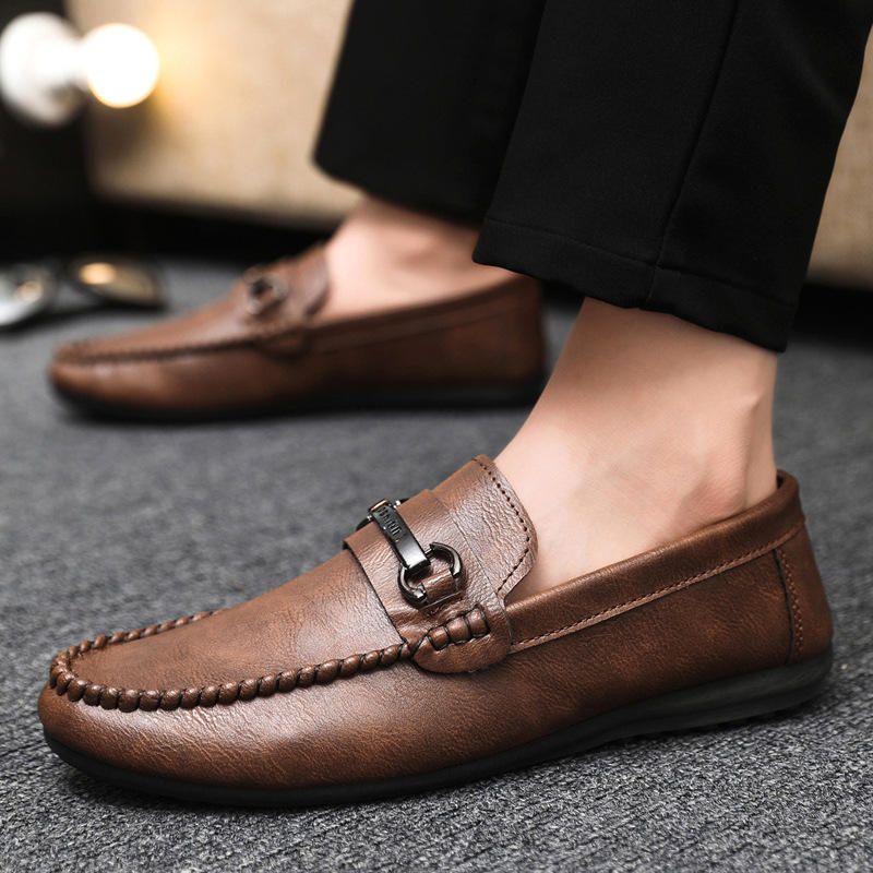 Mocassini da Uomo Casual Slip-On Nuova Collezione Estiva in Pelle Microfibra Marrone/Nero con Suola Morbida e Traspirante Leggera Antiscivolo