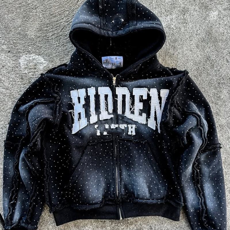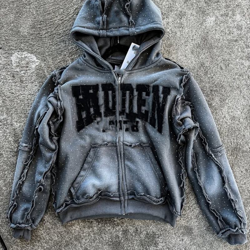 Men's Oversize Casual Hooded Sweatshirt with Zipper Embroidery & Hot Drill Patch Custom Logo Injection Fashionable Loose Mouth