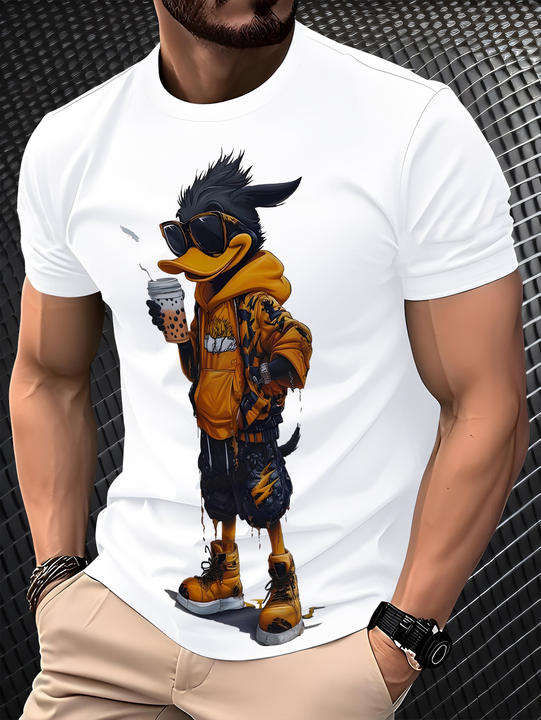 T-Shirt Oversize da Uomo Bianca, Stile Streetwear, Collo Tondo, Manica Corta, 100% Cotone, Logo Stampato sul Davanti, Vestibilità Regolare