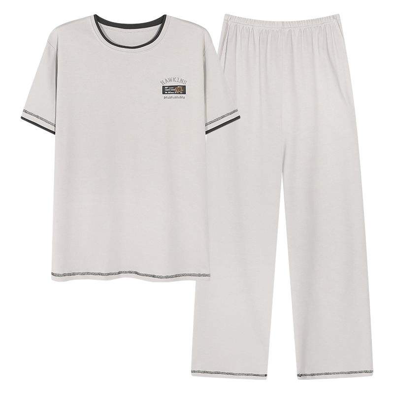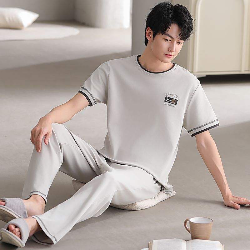 Men's Pajamas Short Sleeve Long Pants 2 Pieces Set Men Sleepwear O-neck Leisure Style Cotton Soft 3XL Plus Size Night Wear