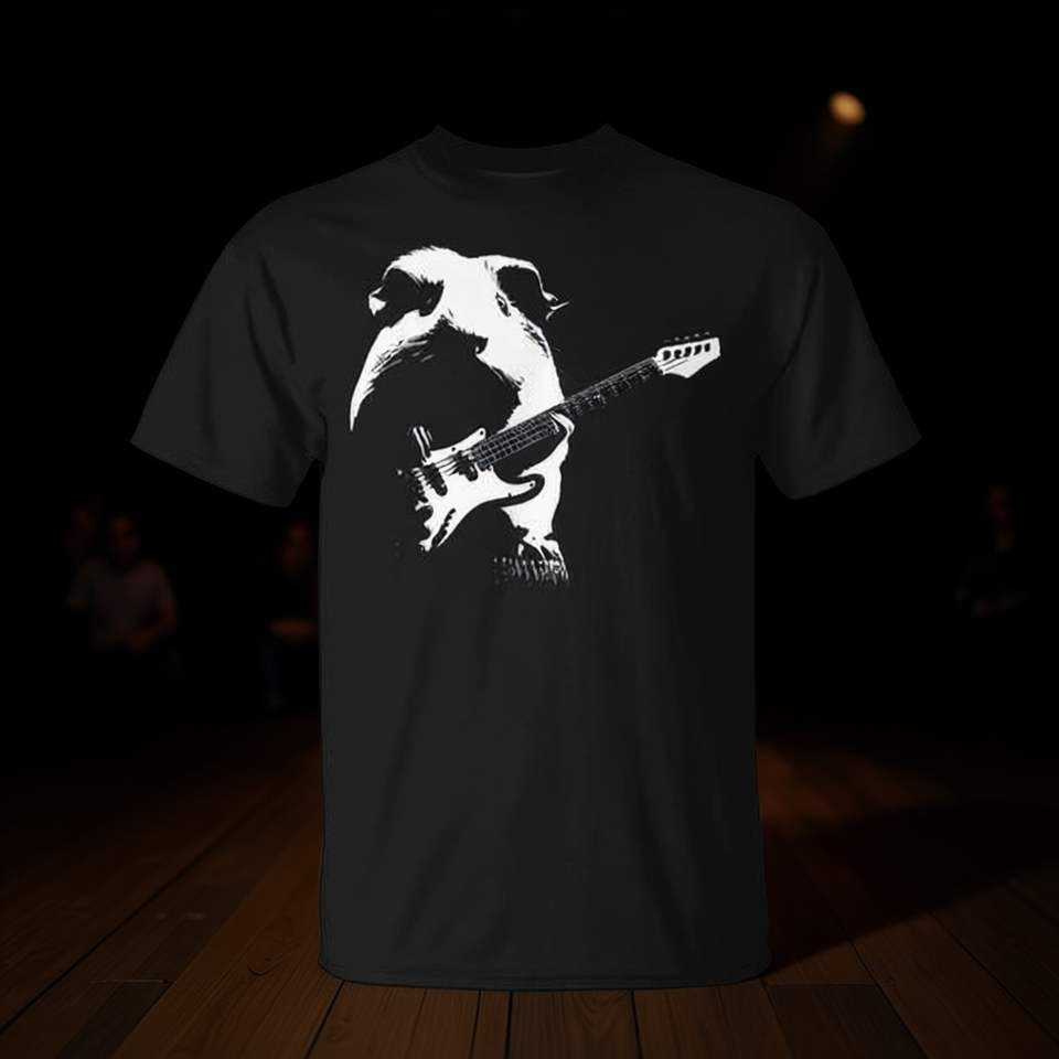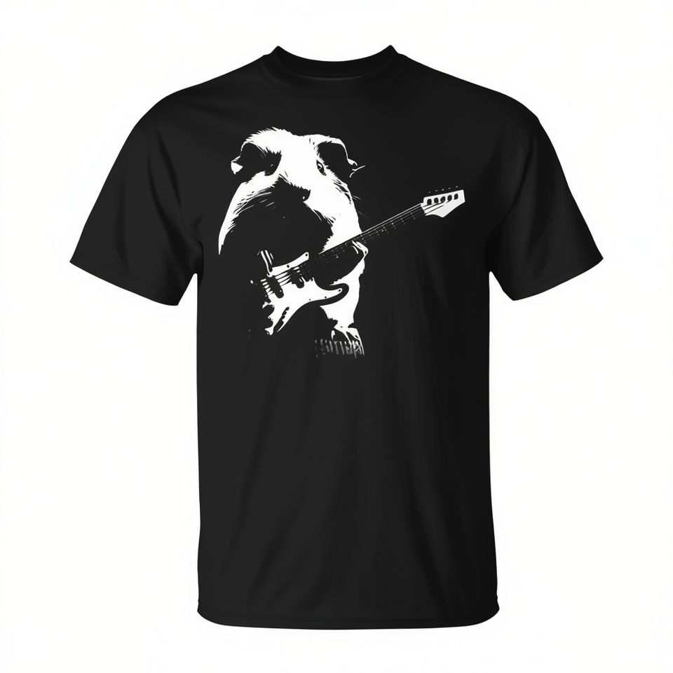 T-shirt da uomo con stampa di un uomo che suona la chitarra, maglietta promozionale con stampa di un porcellino d'India che suona il basso