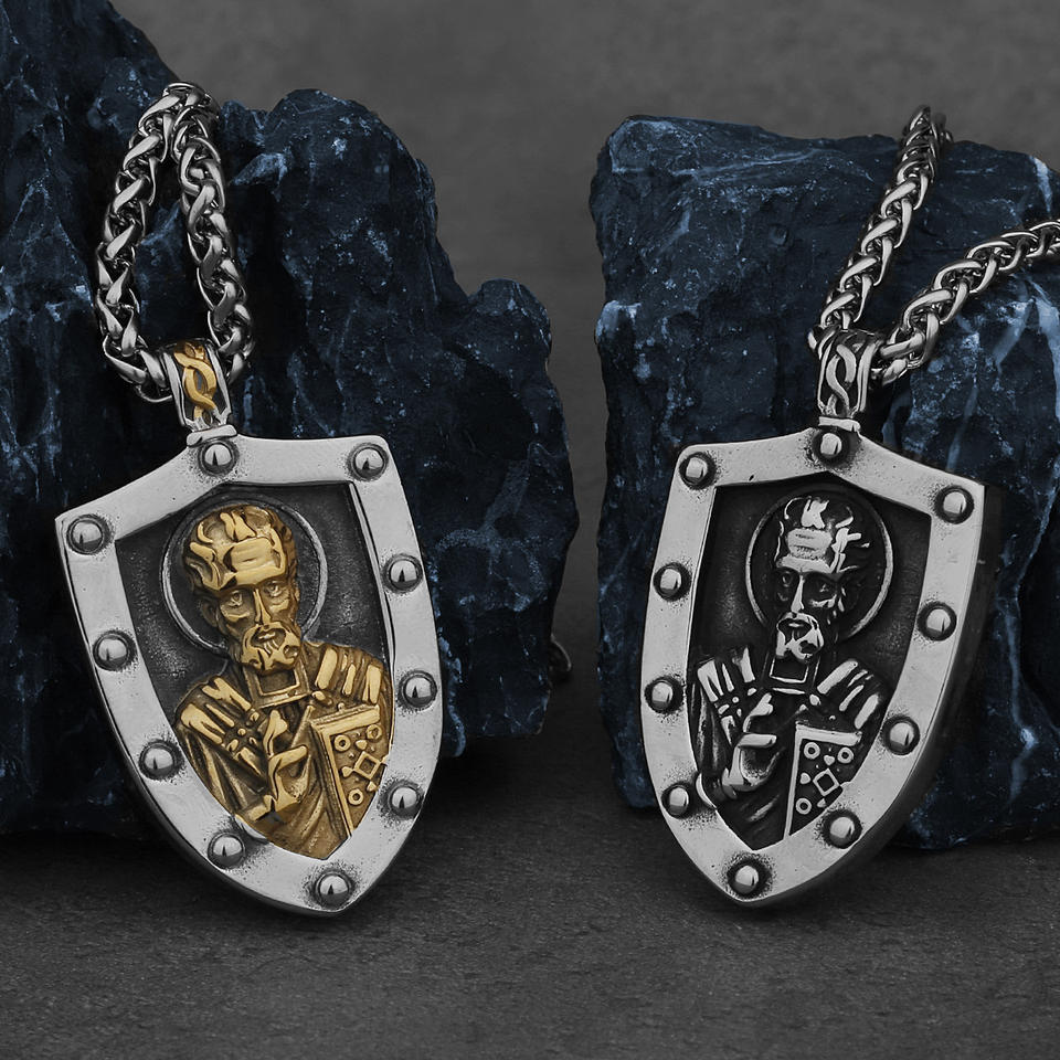 Collana da uomo popolare in titanio stile europeo-americano con ciondolo a croce di San Nicola, motivo a croce protettiva, catena a chiglia alla moda, Buddismo