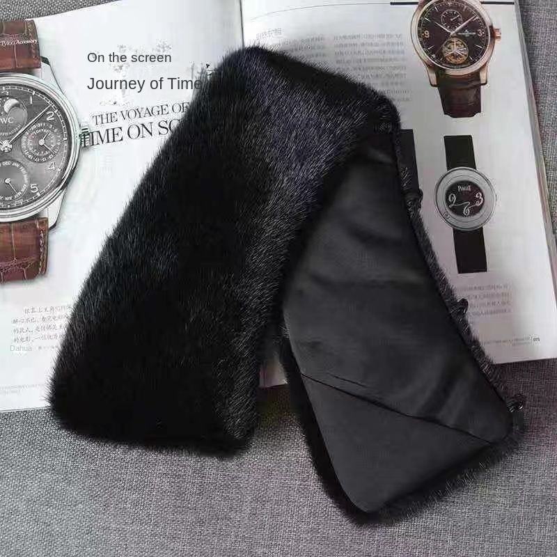 Cappotto in Pelle da Uomo con Collo in Pelliccia di Coniglio, Uniforme Nera Universale con Piccolo Risvolto Quadrato, Vendita Singola Autunno Inverno Tipo Visone
