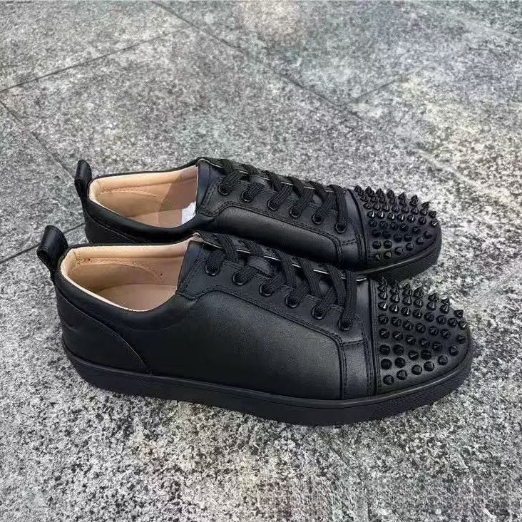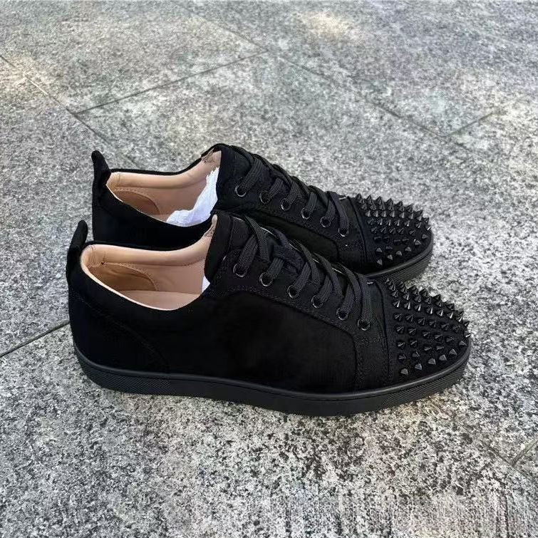 Scarpe da Uomo con Suola Rossa, Sneakers in Pelle Scamosciata con Lacci e Borchie, Scarpe Casual Nere con Suola Piatta