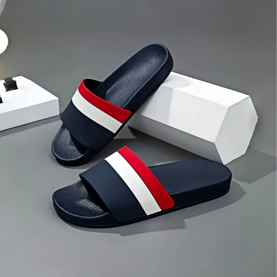 Ciabatte Estive da Uomo con Stampa a Righe Rosse, Bianche e Blu, Pantofole da Casa Casual con Suola Spessa Antiscivolo, Vendita all'Ingrosso OEM