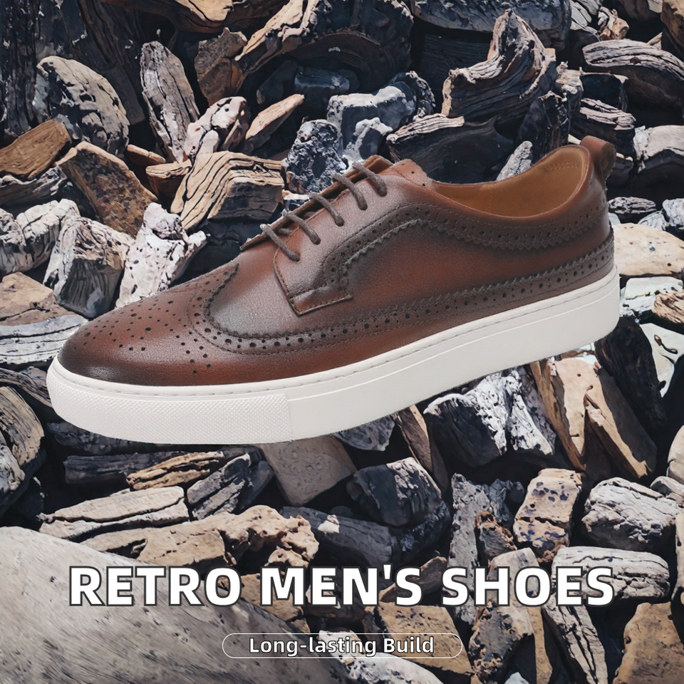 Men's Retro Fashion Sneakers Top Grain Cowhide Leather Durable Casual Shoes Reinforced Stitching Light Weight for Summer Autumn