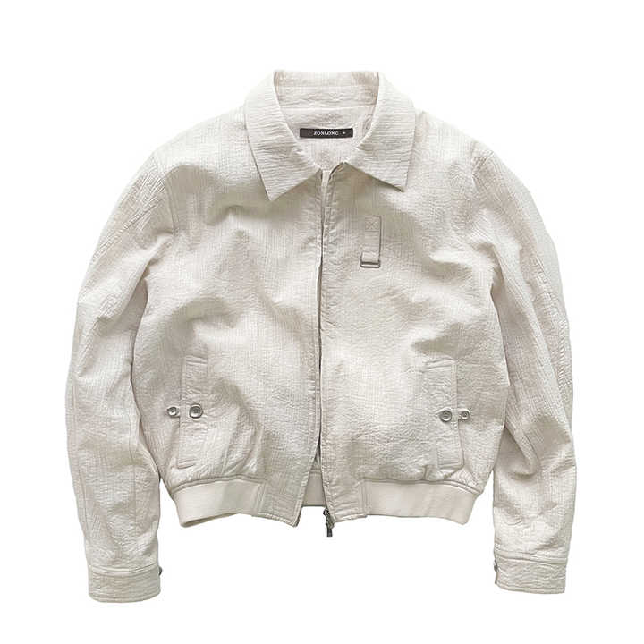 Giacca da Aviatore Elegante da Uomo, Stile Retrò, Tinta Unita Bianca, Alta Qualità, Personalizzabile, per Autunno e Inverno
