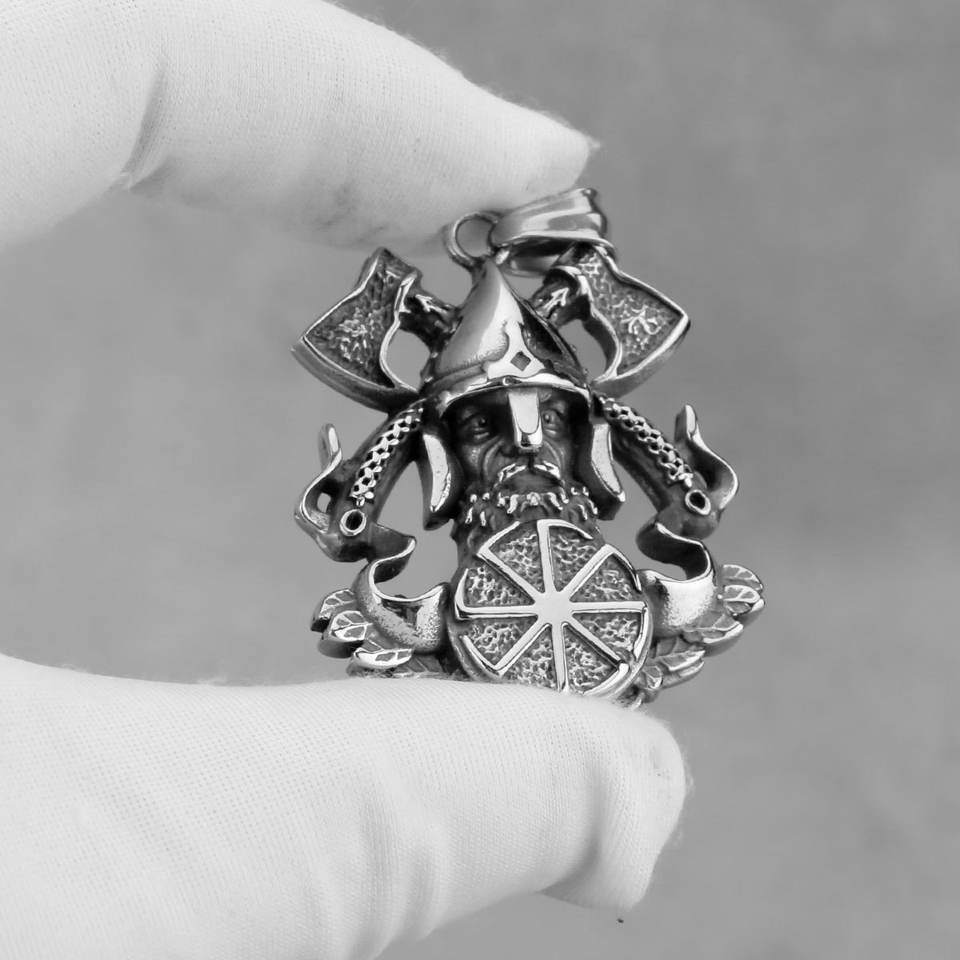 Collana da Uomo Retrò in Acciaio Inossidabile con Ciondolo Ascia del Dio della Guerra Vichingo e Amuleto Runico - Vendita all'Ingrosso