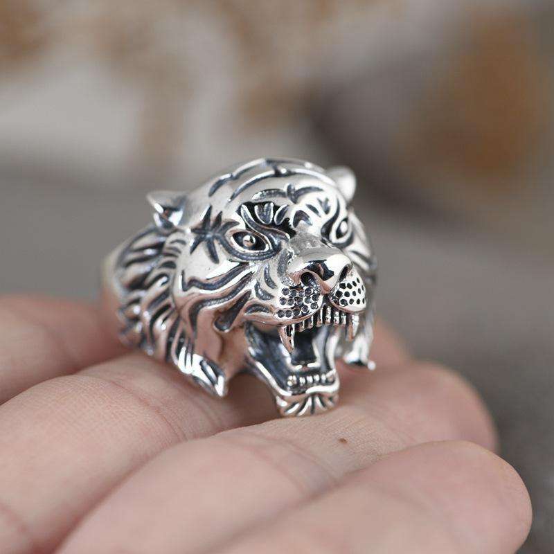 Retrò tigre prepotente anello in metallo prateria re esagerato intarsio gioielli con apertura regolabile stile alla moda per feste