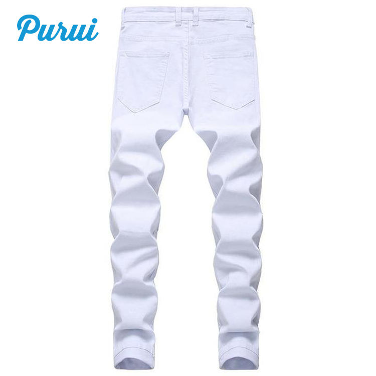 Jeans strappati strappati da uomo in denim slim dritti in cotone bianco jeans da uomo