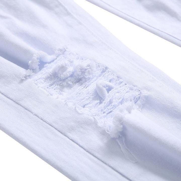 Jeans strappati strappati strappati da uomo Jeans Slim dritti in cotone bianco per uomo