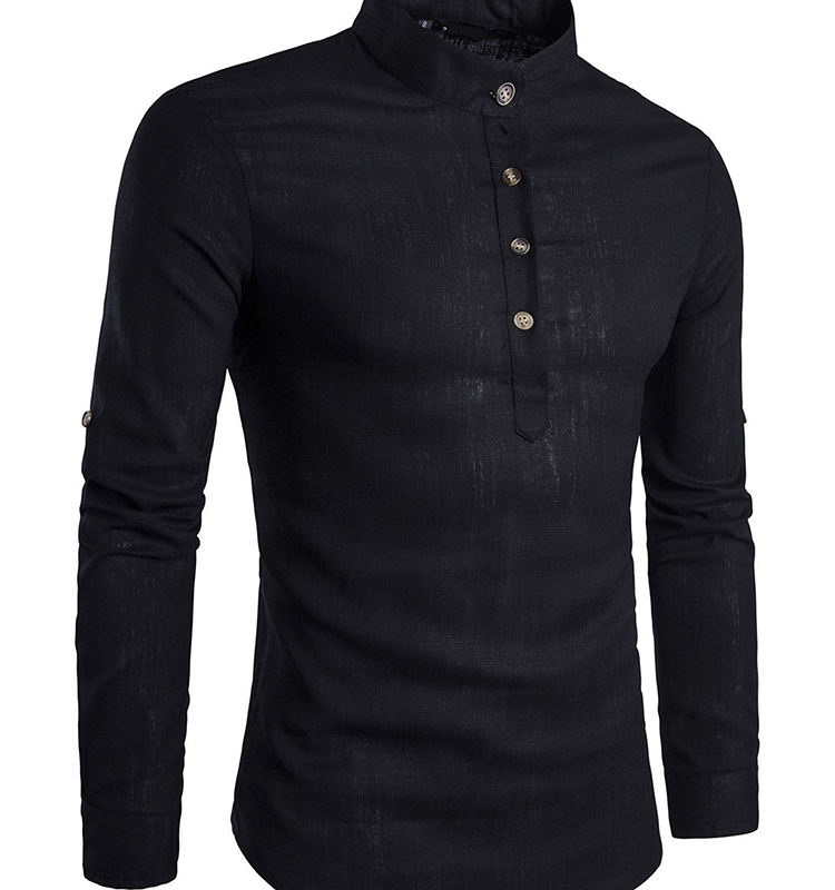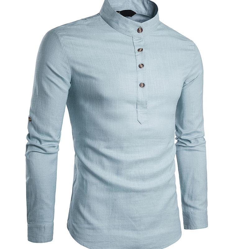 Camicie da uomo con colletto rialzato Camicie Casual da uomo a manica lunga chiaro blu bianco nero