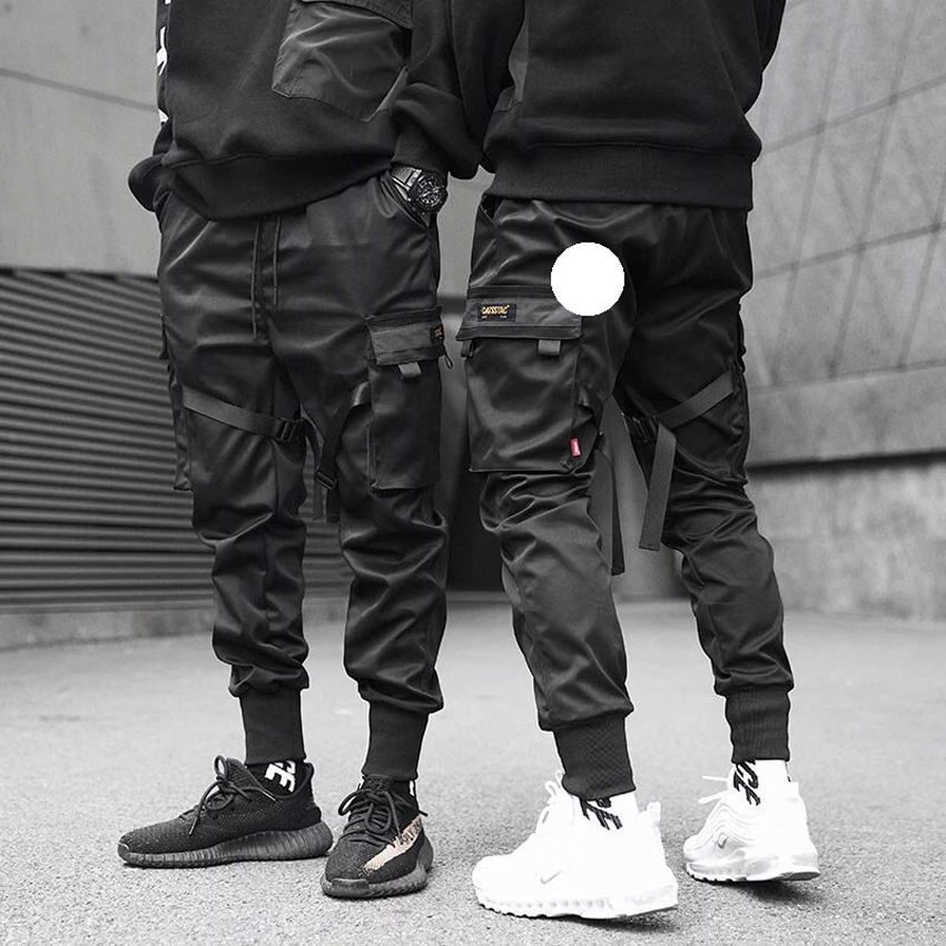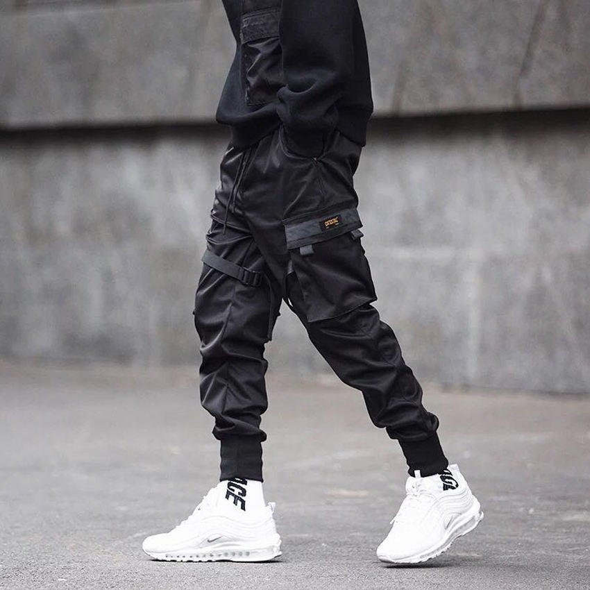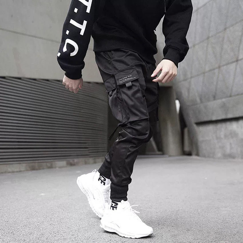 Pantaloni harem con tasche laterali da uomo neri pantaloni cargo da esterno da uomo alla moda ragazzo casual stile casual pantaloni da jogging uomo