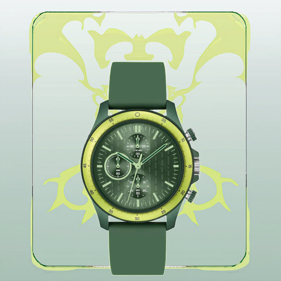 Men's Silicone Seiko Quartz Movement Watch 43mm Japanese Green Glass Eco-Friendly 3 Bar Water Resistant Young People Gift Him