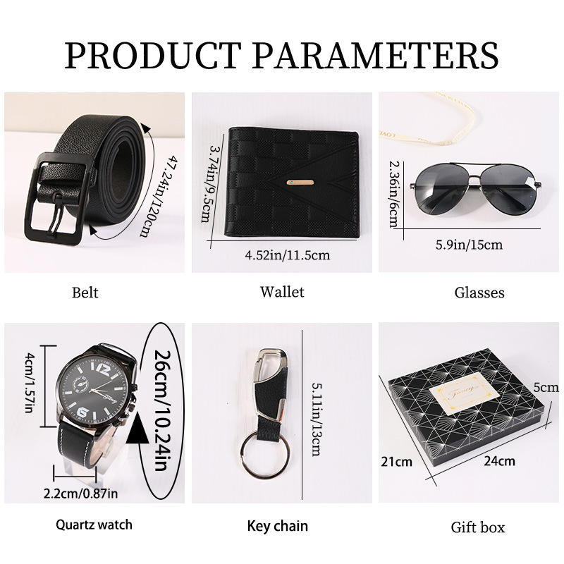Men's Six-Piece Promotional Eco-friendly Business Gift Set Includes Sunglasses Belt Watch for Father's Day