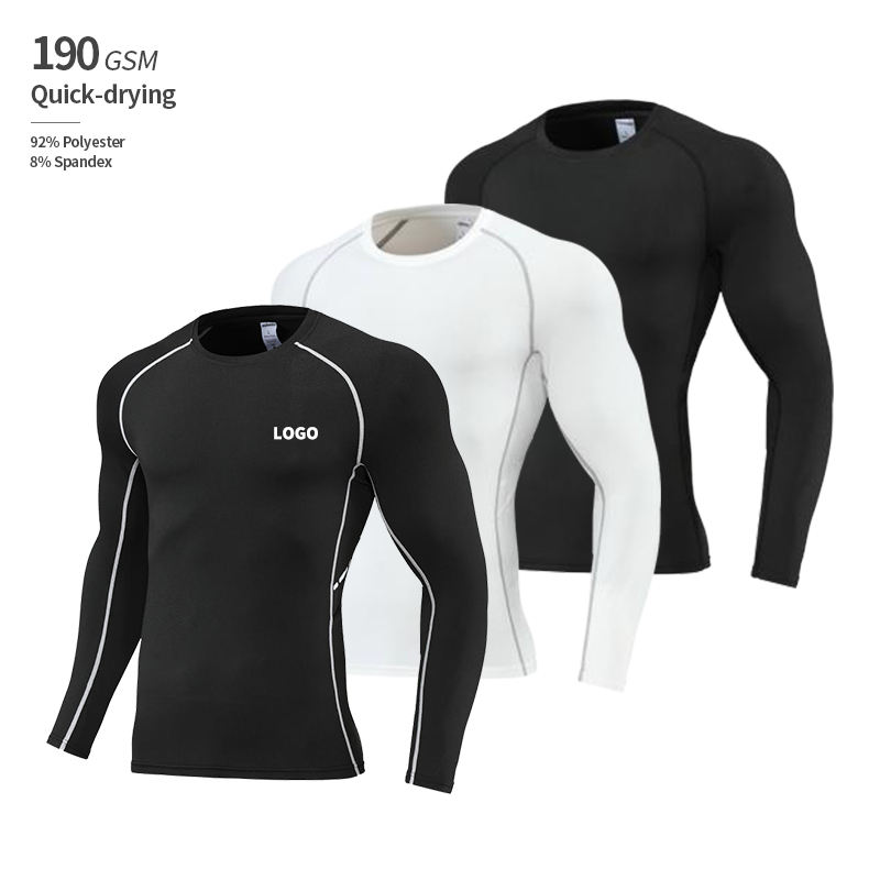 Maglie a Compressione da Uomo Slim Fit 190 GSM ad Asciugatura Rapida a Maniche Lunghe con Stampa Personalizzata Abbigliamento Elastico da Palestra per Sport Attivi