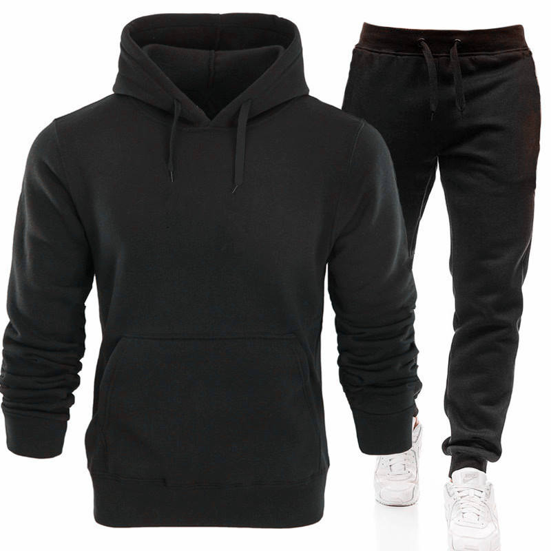 Felpe sportive in tinta unita da uomo 2 pezzi e pantaloni lunghi per tute sportive da Outdoor per allenamento invernale