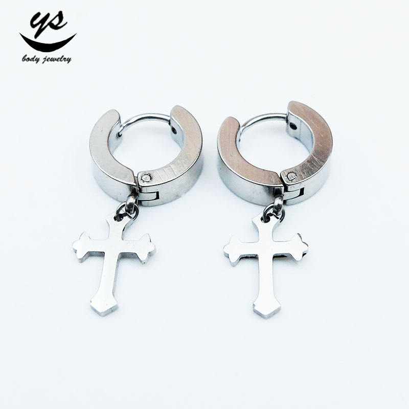 Orecchini a Cerchio in Acciaio Inossidabile da Uomo con Design a Croce Pendente per Matrimoni, Feste o Idea Regalo per Fidanzamento