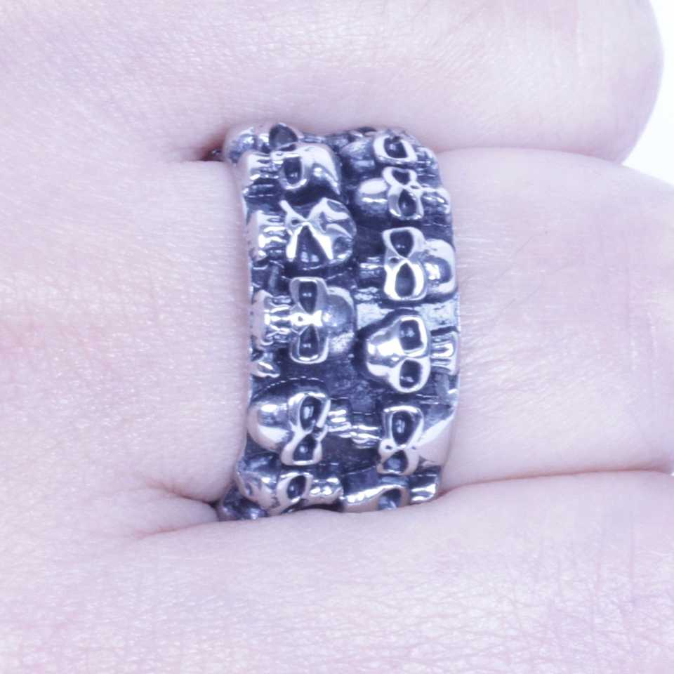 Anello da uomo elegante in acciaio inossidabile con teschio, taglia unica (9-14), con intarsio, anelli alla moda per ragazzi