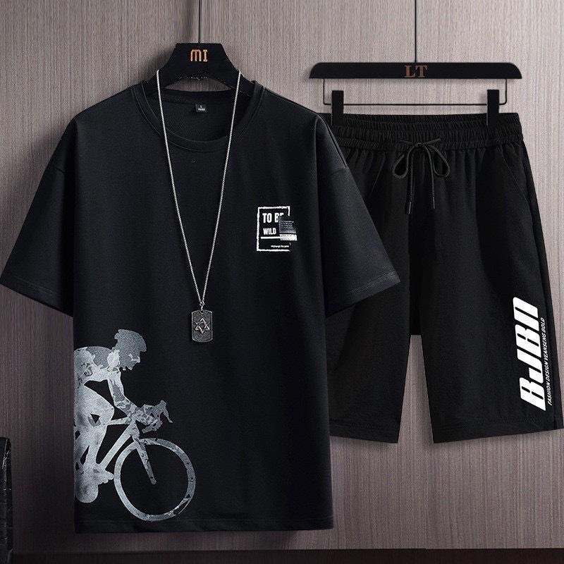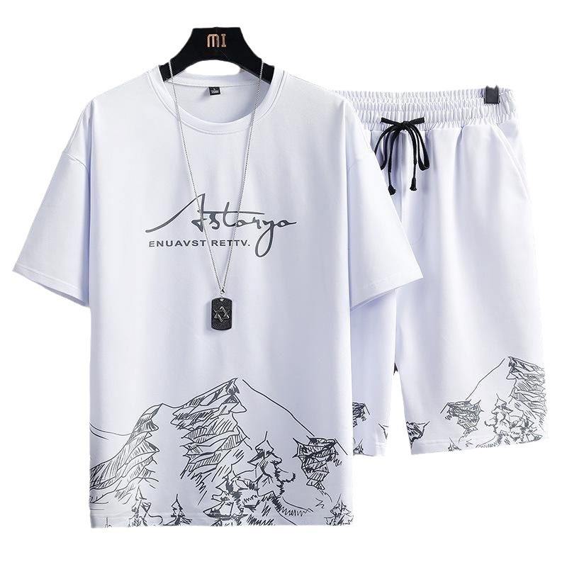 T-shirt da uomo elegante a due pezzi con stampa sfumata in seta di ghiaccio ad asciugatura rapida pantaloncini estivi Casual abbigliamento sportivo a maniche corte