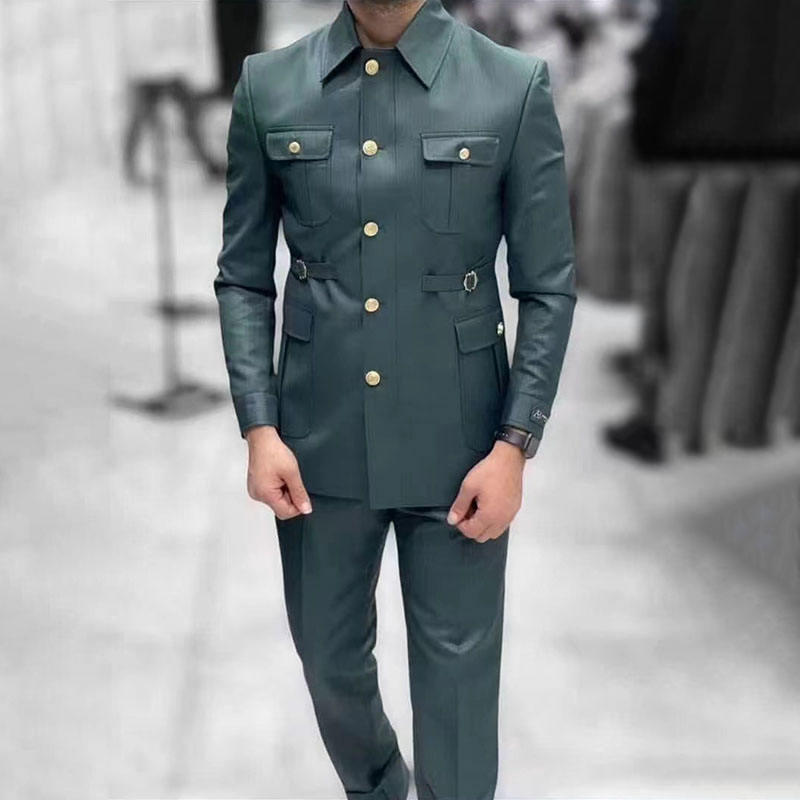Men's Suit 2 Pieces African Clothing Workwear Style Simple Suit for Men Slim Fit Suit Stand Collar Safari