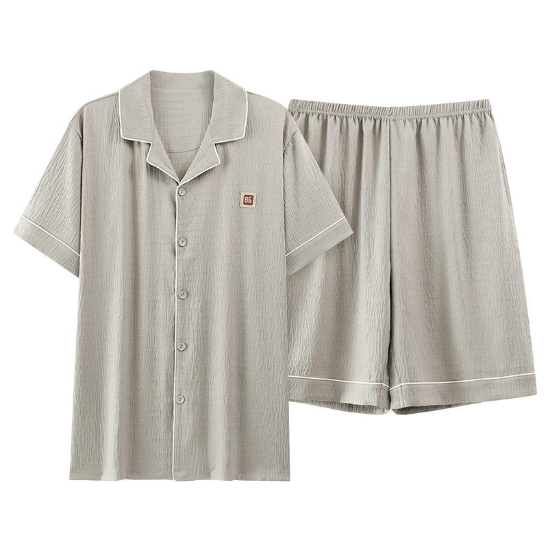 Men's Summer Cardigan Lapel Short-Sleeved Pajamas Simple Home Clothes Clouds Cotton Wrinkle Casual Suit Thin Silk Shorts
