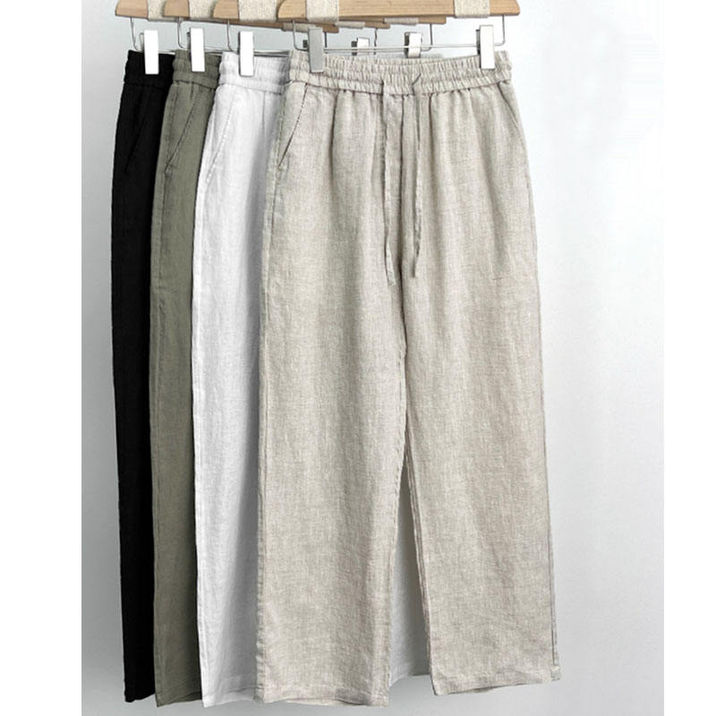 Men's Summer Casual High Waist Linen Pants Wholesale Cotton Linen Trouser Straight Pattern Plain Dyed