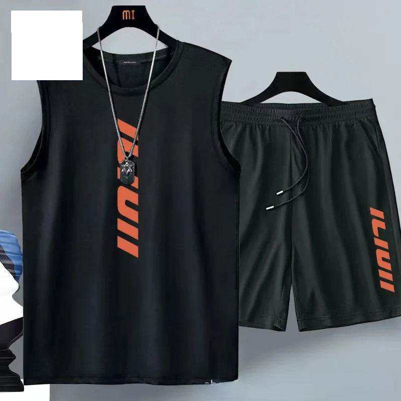 Men's Summer Fashion Casual Basketball Suit Breathable Short Sleeve T-Shirt & Jogging Shorts Street Sportwear 2-Piece Set