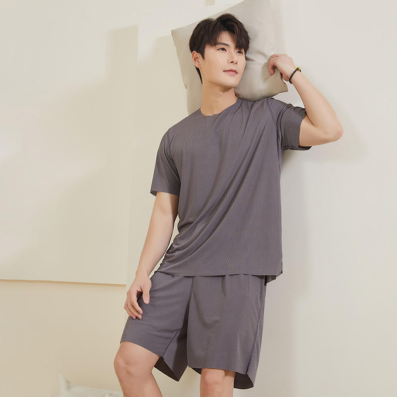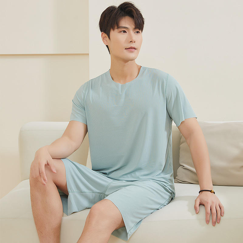 Pigiama estivo da uomo, set di pantaloncini a maniche corte, abito casual, sottile, taglie forti, per la casa, tinta unita, elasticizzato, pigiama in due pezzi