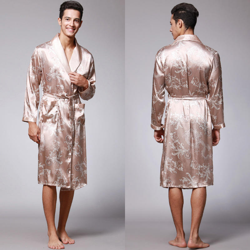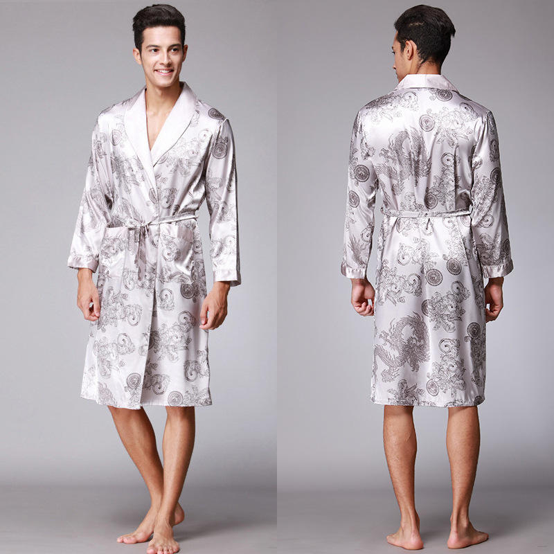 Accappatoio Estivo da Uomo in Raso Stampato a Maniche Lunghe con Laccetti Frontali e Logo, Stile Seta Ghiaccio